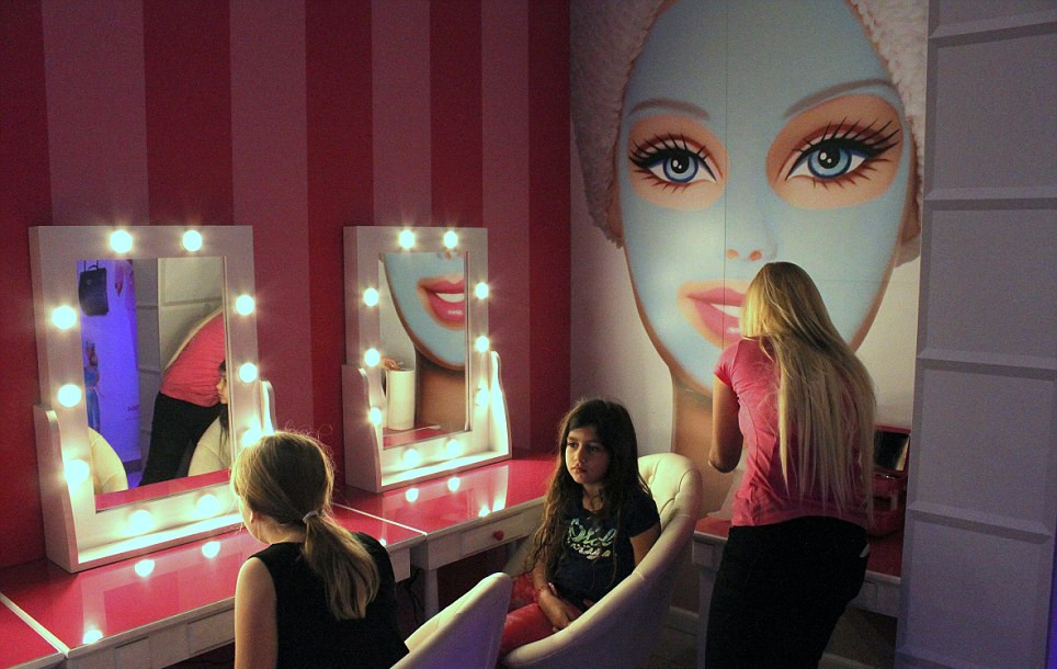 Τέλος υπάρχει και ειδικά διαμορφωμένος χώρος κομμωτηρίου στον οποίο οι μικρές επισκέπτριες μπορούν να φτιάξουν τα μαλλιά τους και το make up τους πριν βγουν στην πασαρέλα.